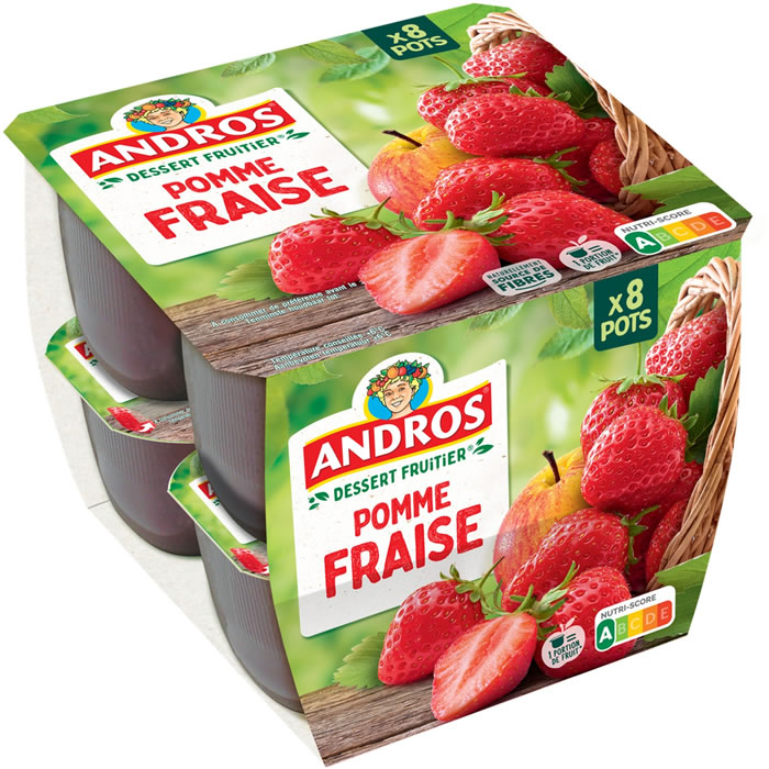 Découvrez le dessert pomme et fraises d’Andros : une savoureuse combinaison de fruits mûrs soigneusement sélectionnés, parfaite pour partager un moment de gourmandise naturelle en famille.
