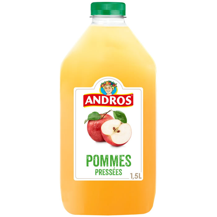 Jus de pomme — 1,5 L. Sans sucres ajoutés, pressé à partir de pommes sélectionnées.