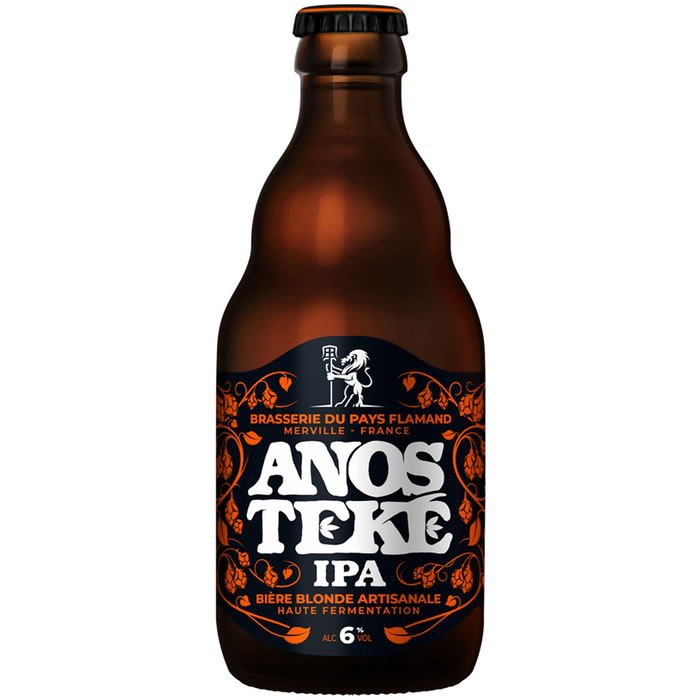 Bière régionale Houblonnée. Brassée à Merville, l’Anosteke IPA est une bière de type India Pale Ale, brassée à partir de 3 houblons américains, qui lui confèrent son caractère houblonné si particulier. C’est une bière légère et fraîche avec une complexité gustative très agréable.