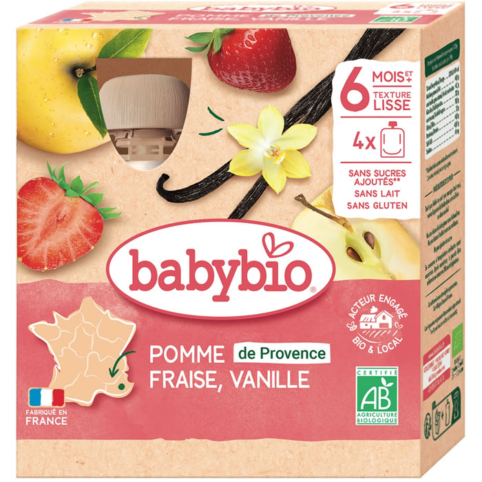BABYBIO – Pomme, fraise et vanille 4 x 90 g