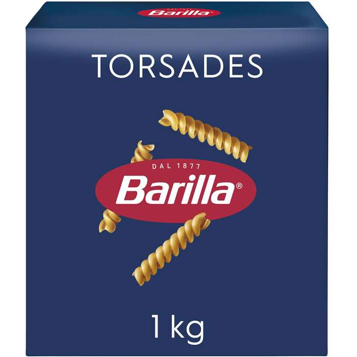Girandole torsades N°34 BARILLA, format 1kg, pâtes courtes italiennes, al dente.