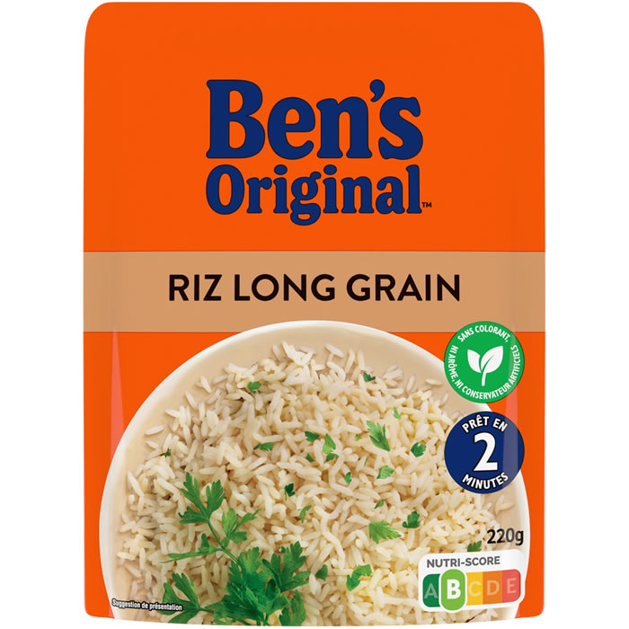 Riz long grain micro-ondes BEN’S Original, 220g. Prêt en 2 min, Nutriscore B.
