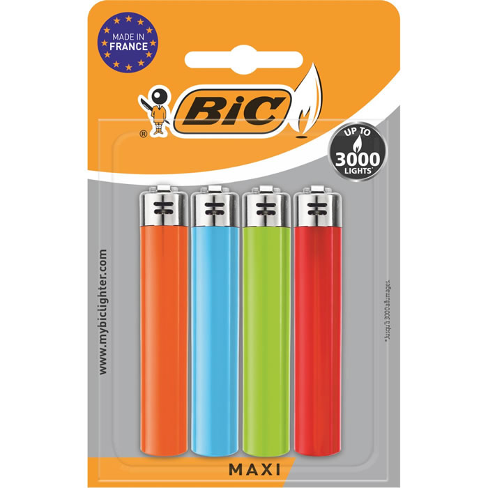 Désignation légale : BIC Maxi Briquets à Pierre – Couleurs Assorties, Etui Carton de 4