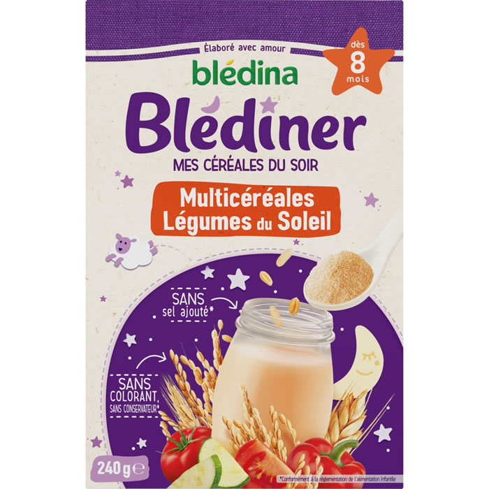 Expert de la diversification alimentaire depuis plus d’un siècle, Blédina accompagne votre bébé à chaque repas. Les céréales infantiles Blédîner Multicéréales Légumes du Soleil, dès 8 mois, offrent des saveurs douces de légumes pour le dîner de bébé.