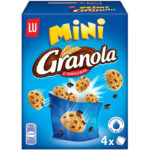 Ingrédients : Farine (farine de blé, calcium, fer, niacine, thiamine) – pépites de chocolat blanc (20%) [sucre, lait entier en poudre, beurre de cacao, lait écrémé en poudre, émulsifiant (lécithines de soja), arôme naturel] – huile végétale (palme) – lactosérum en poudre (lait) – sirop de sucre partiellement inverti – poudres à lever (carbonates de sodium et d’ammonium) – sel – arômes naturels.