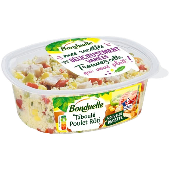 Taboulé au poulet rôti, semoule fine, légumes variés, recette gourmande, 300g, BONDUELLE.