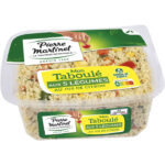 Ingrédients : Semoule de BLÉ dur réhydratée (62%) (semoule de BLÉ (29%), eau), poivrons, tomates (8%), huile de colza, concombres (3%), raisins réhydratés (2,5%) (raisin, huile de colza), menthe douce (2%), oignons, vinaigre d’alcool, persil, huile d’olive vierge extra (1%), jus de citron, sel, MOUTARDE de Dijon, arômes naturels (CELERI), épices (0,1%).