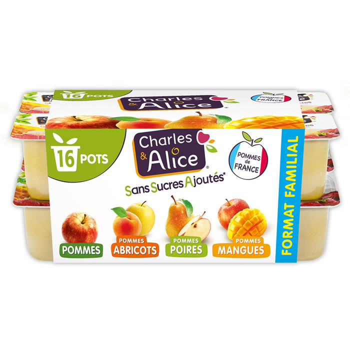 CHARLES & ALICE – Dessert pomme, mangue, abricot et poire sans sucres ajoutés 16 x 100g