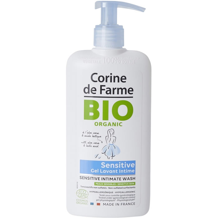 Gel lavant intime sans parfum, à l’aloe vera bio. Hypoallergénique, 98 % d’origine naturelle, certifié Ecocert. Conçu et fabriqué en France.
