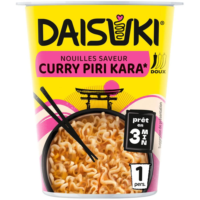 Découvrez les nouilles instantanées DAISUKI saveur curry piri kara : une pause épicée et réconfortante prête en 3 minutes. L’alliance du curry relevé et des notes piri kara apporte un caractère japonais authentique pour un repas express et savoureux.