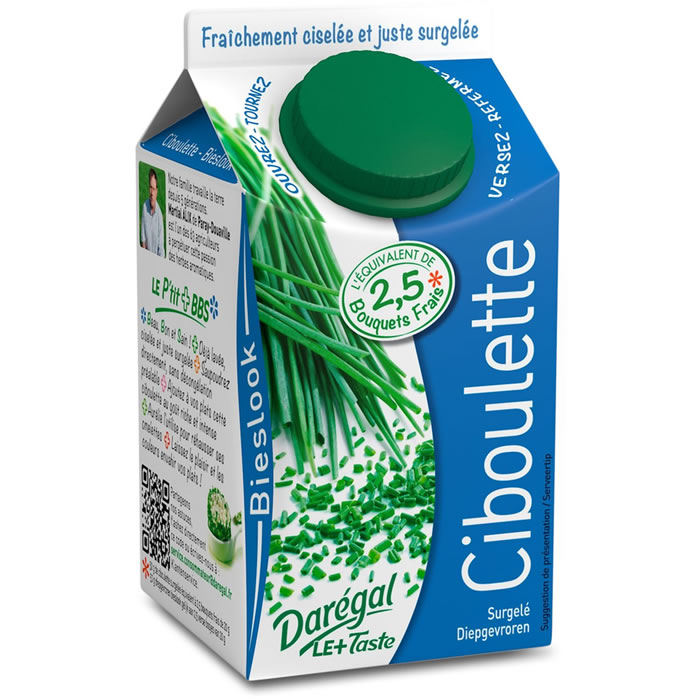Ciboulette surgelée Daregal : herbe aromatique, équivalent 2,5 bouquets frais, à saupoudrer directement sur vos plats, Nutriscore A.