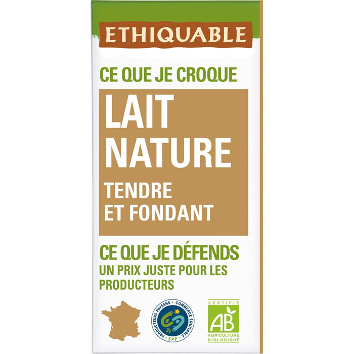 ETHIQUABLE – Tablette de chocolat au lait bio 100g