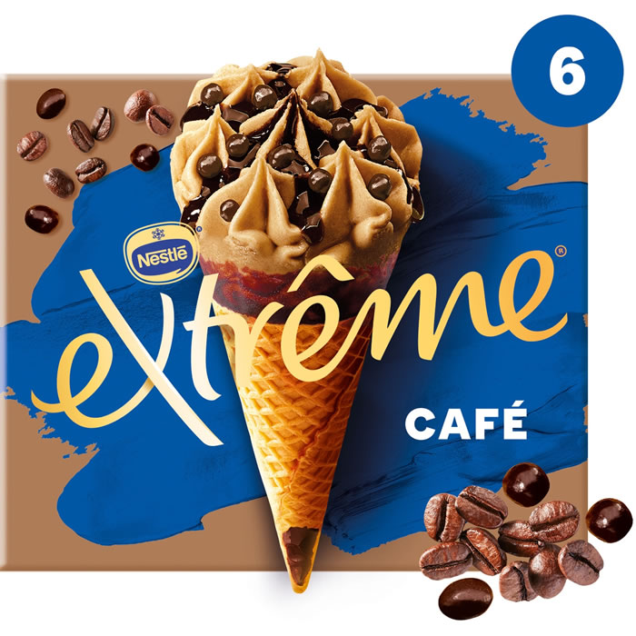 Désignation légale du produit : Gaufrette garnie d’une glace au café, d’une sauce au chocolat et au café (10%) et de pépites au chocolat et céréales (2%)