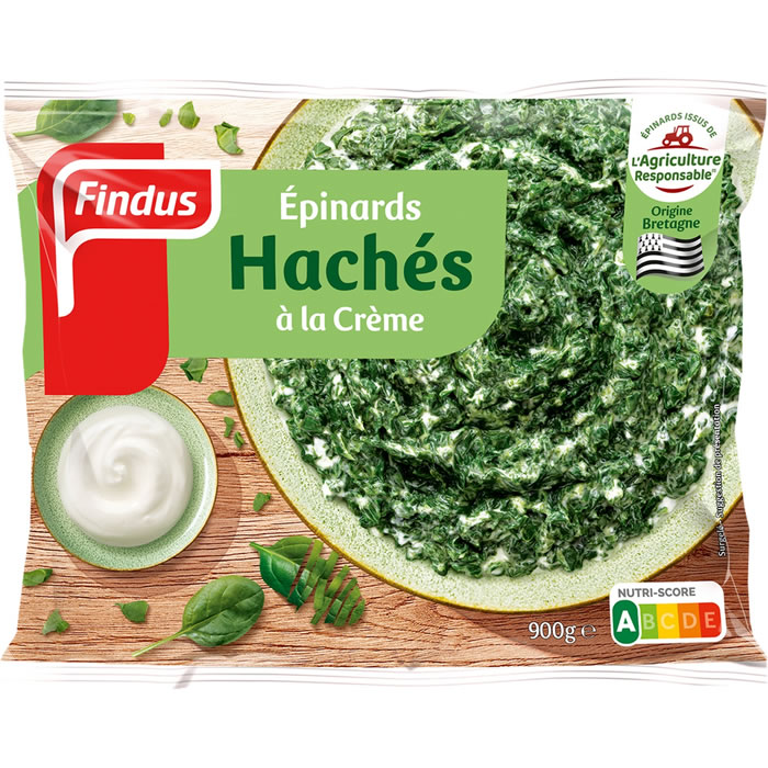Epinards hachés à la crème Findus : recette gourmande, épinards issus de l’agriculture responsable, format familial, Nutriscore A.