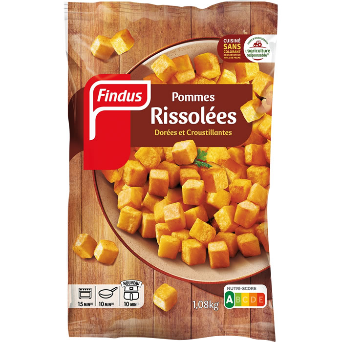 FINDUS pommes de terre rissolées, dorées, croustillantes, bonne tenue à la cuisson, familial.
