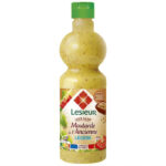 Ingrédients : Eau, huile de colza, vinaigre, ciboulette 2,5%, jaune d’OEUF, amidon modifié de pomme de terre, sucre, sel, arôme naturel de MOUTARDE, ail 0,3%, épaississant : gomme xanthane, arôme naturel (contient du LAIT), poivre.