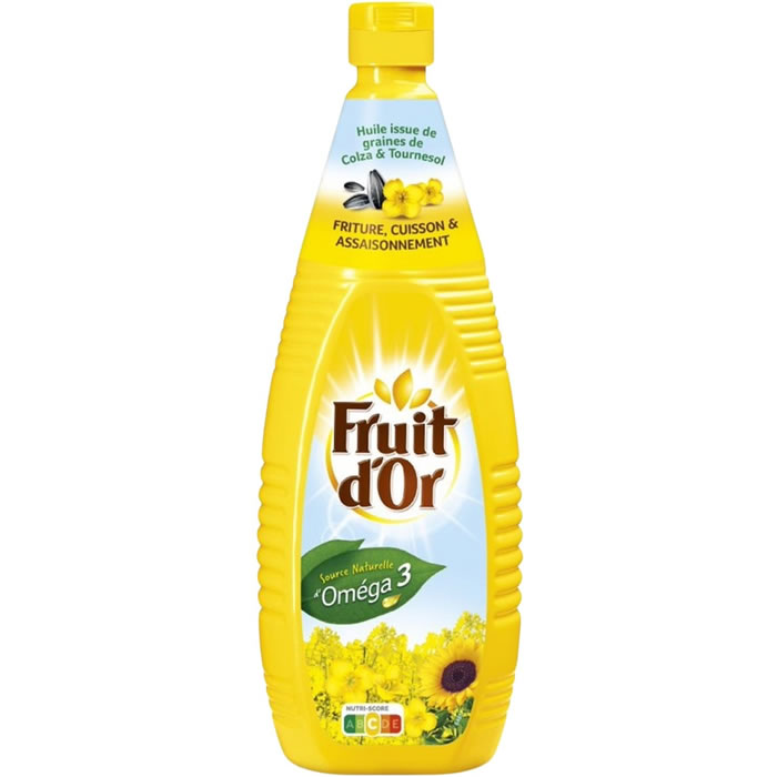 Huile de tournesol FRUIT D’OR, mélange d’huiles de colza et tournesol, riche en oméga 3 et vitamine E.
