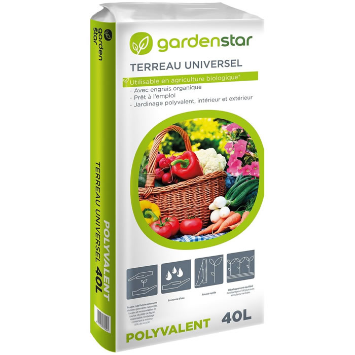 Désignation légale : GARDENSTAR : TERREAU UNIVERSEL 40L
