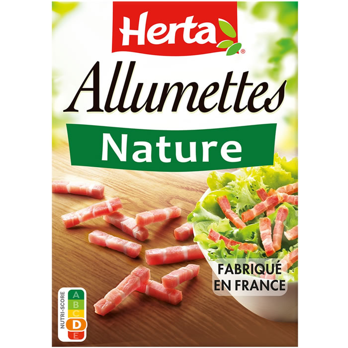 Allumettes nature HERTA, découpe fine idéale pour salades, pâtes, omelettes, farces et quiches; fabriquées en France (St Pol sur Ternoise).