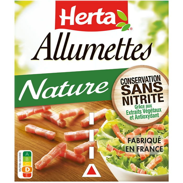 Allumettes nature sans nitrite, découpe extra fine, pour relever vos recettes. Origine Union Européenne. Nutri-Score Niveau D. Conditionné sous atmosphère protectrice.