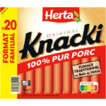 Saucisses de poulet HERTA Knacki. 210g, goût fumé, 100% poulet, Nutriscore D.