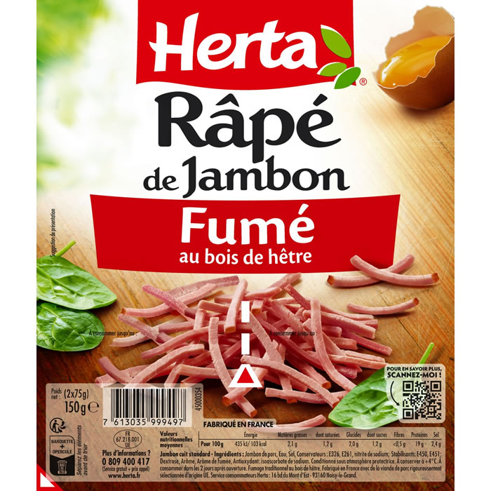 Pratique à saupoudrer, idéal pour macaroni, salade ou omelette. Râpé de jambon fumé HERTA pour gagner du temps en cuisine.