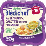 Assiette bio dès 18 mois : petites lasagnes aux légumes, légumes cuits séparément à la vapeur pour préserver leurs saveurs, lait provenant de vaches nourries à l’herbe.