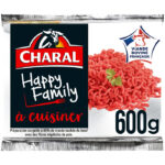 Désignation légale du produit : Préparation de viande bovine halal hachée (80%) avec des protéines végétales de soja, surgelée