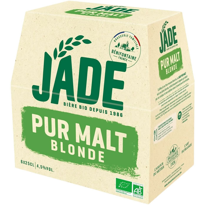 Désignation légale : Bière JADE BIO BLONDE 6X25CL 4°5 issue de l’agriculture Biologique
