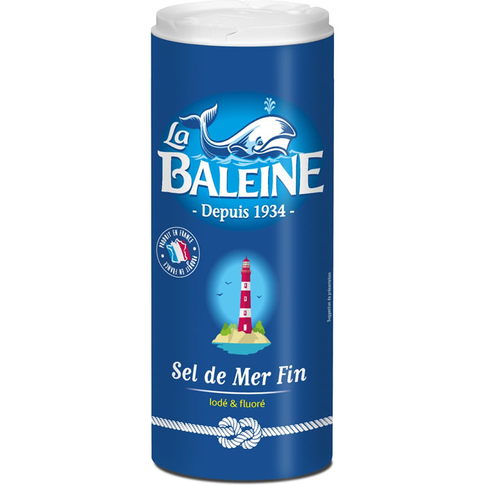 BOITE SEL FIN IODE ET FLUORE LA BALEINE. Ce sel de mer fin enrichi en iode et fluor est parfait pour l’assaisonnement et la préparation de vos plats.