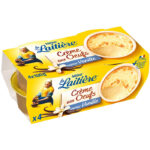 Crème dessert au chocolat La Laitière. Avec du lait, des œufs, du chocolat et de la crème pour un fondant unique. 4 pots de 100g. Origine France.