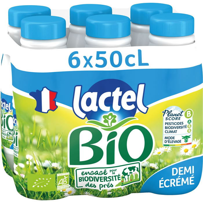 LACTEL – Lait demi-écrémé UHT bio 6 x 50 cl