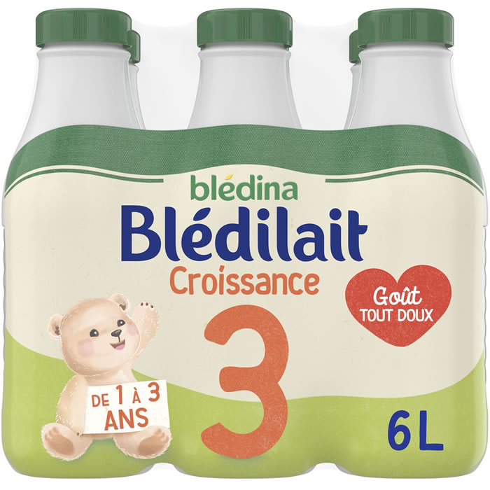 Les experts en nutrition de Blédina ont développé Blédilait Croissance : une formule nature pour bien grandir !Uneformule sans arôme, car les habitudes alimentaires prises par votre enfant pendant ses premières années sont celles que l’on retrouve à l’âge adulte.Du Fer et des Omega 3(1) qui contribuent au bon développement cérébral de votre enfant, de la Vitamine D nécessaire à la croissance et au développement osseux normaux de votre enfant.(1) Acide alpha-linolénique