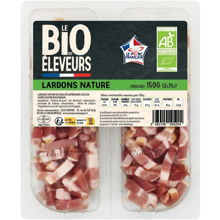 Désignation légale : LARDONS NATURE DE PORC BIO 2X75GR