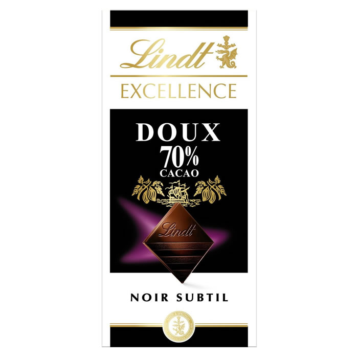 Un chocolat noir doux et onctueux à 70% de cacao, qui révèle la qualité du chocolat Lindt. Appréciez sa texture lisse et le croquant de ses carrés fins.
