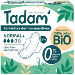 Ingrédients : Voile de surface : d’origine naturelle (amidon de maïs, canne à sucre, betterave ou pomme de terre), sans lotion chimique ni colorant. Barrières antifuites : Green PE, polypropylène. Voile d’acquisition : cellulose de bois airlaid 100% certifiée FSC® et TCF, polypropylène, polyéthylène. Coussin absorbant : cellulose de bois 100% certifiée FSC® et TCF, microbilles absorbantes d’origine renouvelable. Enveloppe externe : matière végétale (canne à sucre). Languette : papier siliconé certifié FSC®. Emballage et pochette : plastiques 100% recyclés et recyclables.