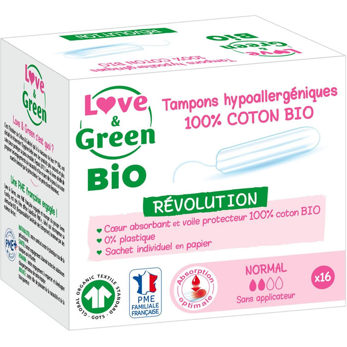 Désignation légale : Love & Green BIO Tampons hypoallergéniques Digitaux NORMAL x 16