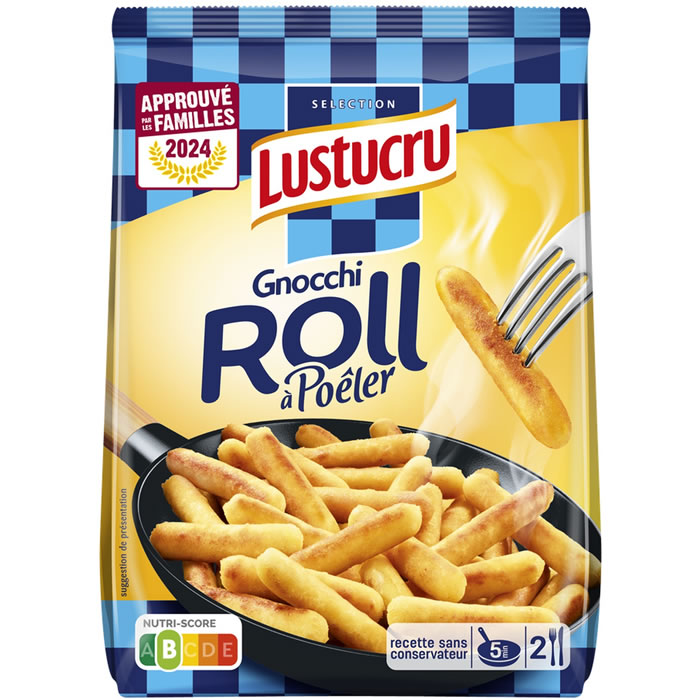 Bâtonnet de gnocchi à poêler Lustucru Roll, pâtes fraîches françaises en forme de bâtonnets. Texture crousti-moelleuse, prêts en 5-7 minutes, 300g pour 2 personnes. Origine France.