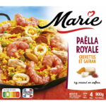 Ingrédients : Filet de poulet korma (57,2%): eau, filet de poulet origine France cuit (27,5%), yaourt (LAIT entier, LAIT écremé en poudre, ferments lactiques), crème fraîche [(crème de LAIT, protéines de Lait, stabilisant (carraghénanes)], oignons, huile de tournesol, ail, AMANDES effilées (1,3%), cumin, lait de coco (1 ,1%), coriandre, amidon transformé de maïs, sel, conçentré de tomates, noix de coco râpée, curcuma, sucre, coriandre feuille, cardamome, jus de citron [jus de citron, conservateur (DISSULFITE de potassium)], piment. Riz basmati (42,8%): Riz basmati cuit (90,2%), oignons, huile de tournesol, raisins sec (2,3%) (raisins, huile végétale non hydrogénée), beurre (crème de LAIT, ferments lactiques}, ail, sel, cardamome.