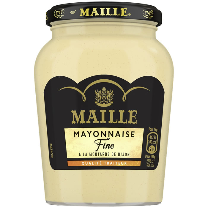 La Mayonnaise Fine Qualité Traiteur Maille est une recette raffinée de Mayonnaise, préparée et rehaussée à l’aide d’une recette emblématique : la Moutarde de Dijon Maille. Son goût équilibré et sa texture onctueuse se marieront parfaitement avec des crustacés, une salade de céleri râpé ou en œufs mimosa.