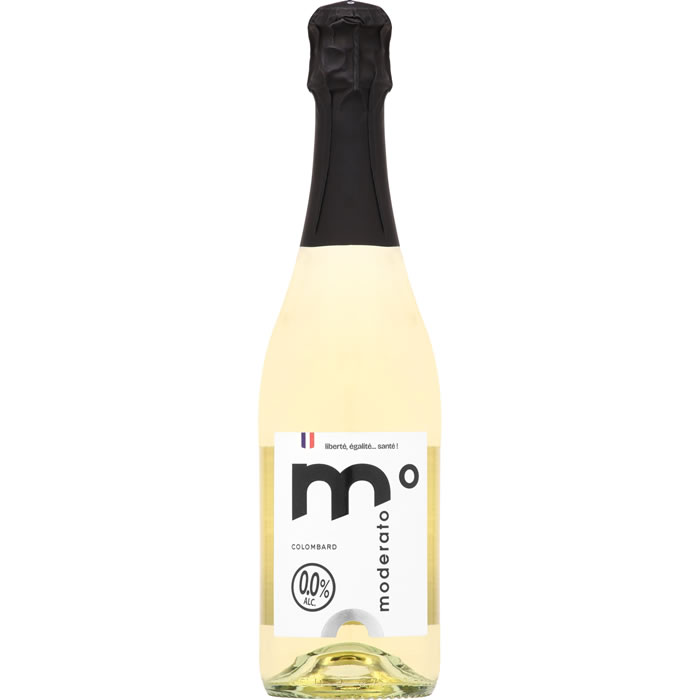 Désignation légale : Boisson à base de vin effervescent désalcoolisé – Moderato cuvée originale 75cL.