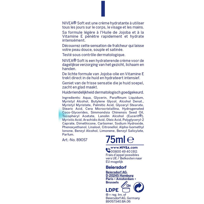 NIVEA Soft – Crème soin hydratant corps, visage, mains 75 ml