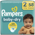 PAMPERS – Baby-Dry Taille 2 (4-8 kg) 56 couches