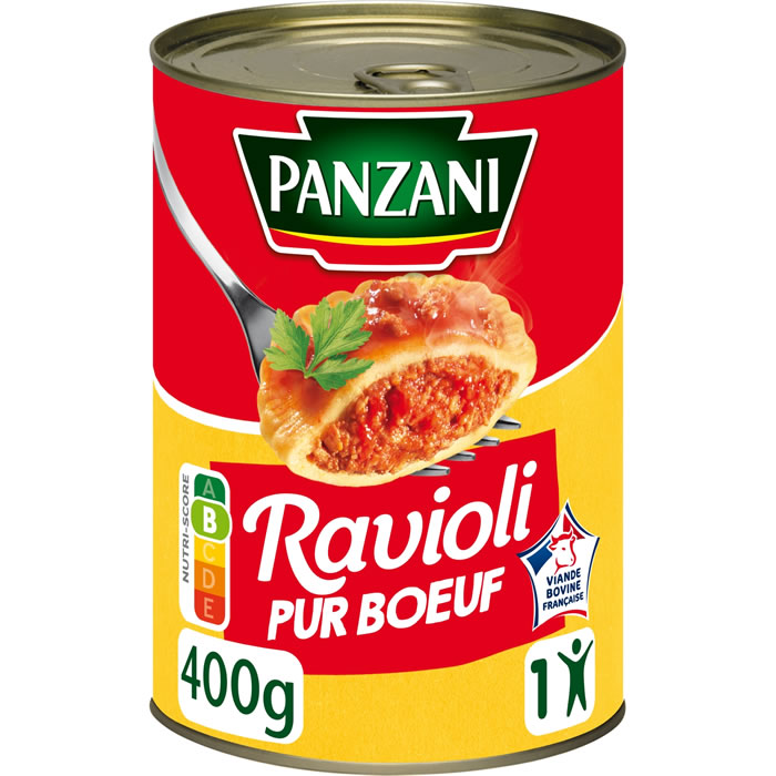 Ravioli pur boeuf PANZANI, viande bovine française, sans colorant ni conservateur, format individuel.