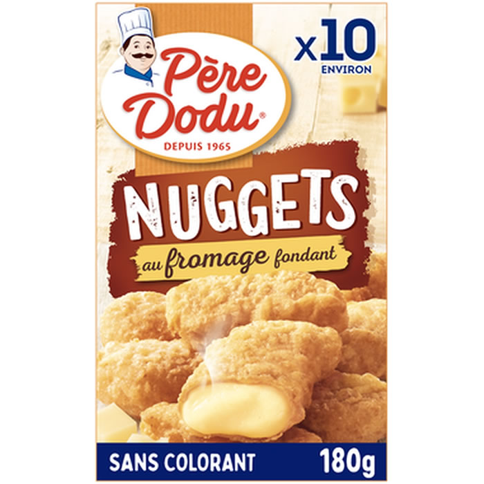 Nuggets de fromage PERE DODU. 180g, super fondant, panure dorée, Nutriscore B, apéritif ou repas gourmand.