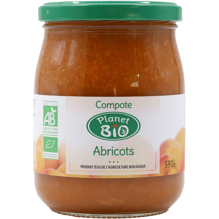 Désignation légale du produit : Planet bio compote d’abricots 590g bio sucre FT