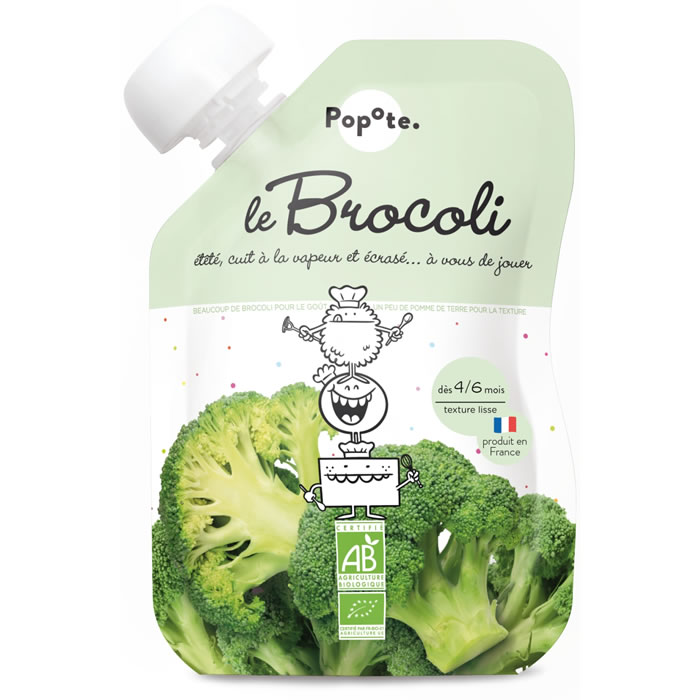 Fleurettes de brocolis* 75 % – Eau 19 % – Pommes de terre* 6 %. *Ingrédients issus de l’agriculture biologique.