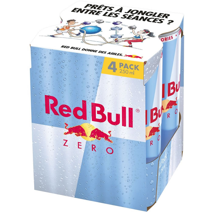Le pack de 4 Red Bull Zero sans sucre. L’énergie de Red Bull sans culpabilité, pour vous accompagner dans tous vos défis. Plus que 5 disponible(s) !