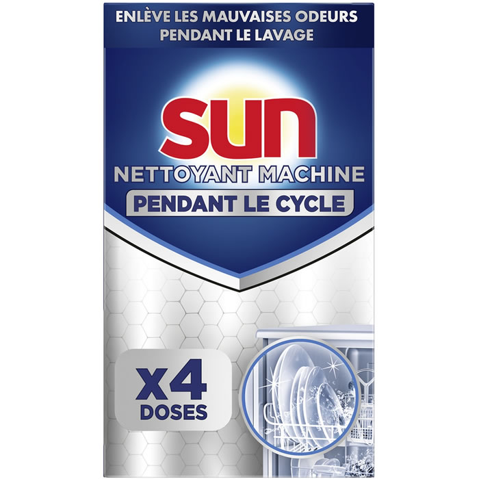 Nettoyant machine pendant le cycle x4: enlève les mauvaises odeurs; machine propre, vaisselle brillante et prête à l’emploi.