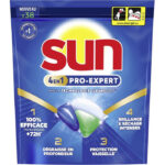 Sun Tout‑En‑1 Ecolabel 86 lavages: 100% efficace sur +99 taches du quotidien (amidon), vaisselle étincelante, formule complète, ingrédients actifs d’origine naturelle 85%.